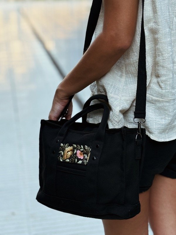 Cartera confeccionada en lona. Tamaño mediano/chico.
