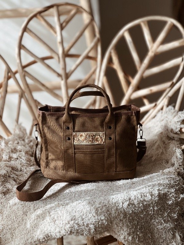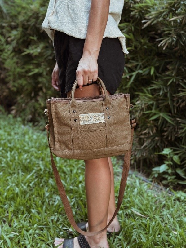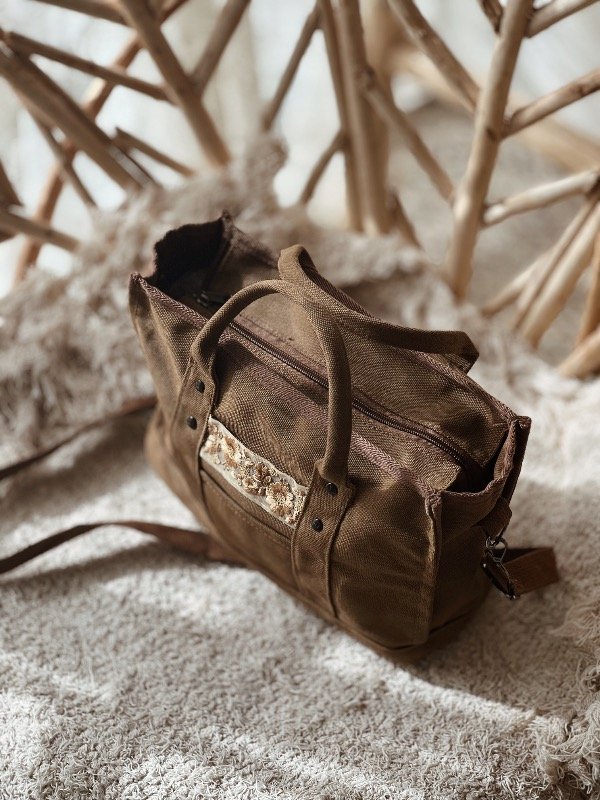 Cartera confeccionada en lona. Tamaño mediano/chico.