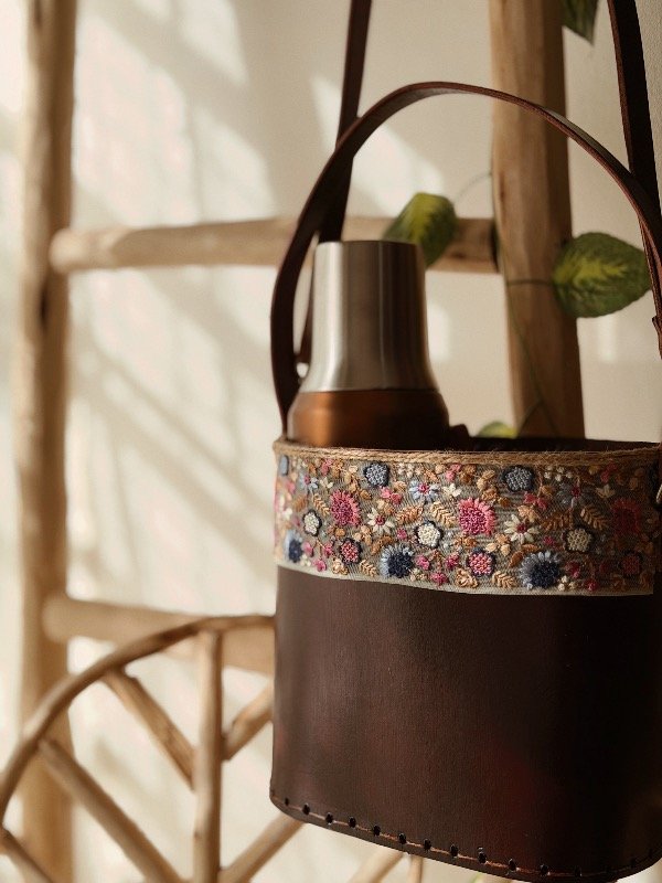 100% cuero, hecha a mano, pensada en cada detalle. Con un bordado único 🌸🌞