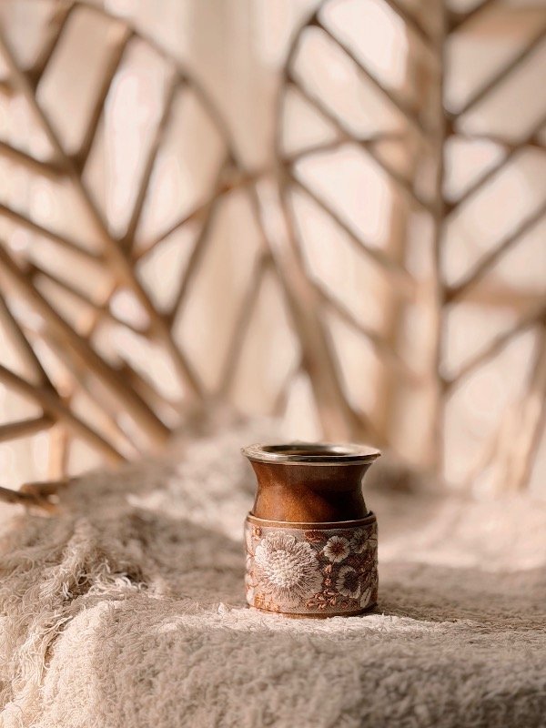 Mate de calabaza. Base 100% cuero intervenido con bordado - diseños únicos -