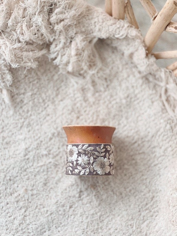 Mate de calabaza. Base 100% cuero intervenido con bordado - diseños únicos -