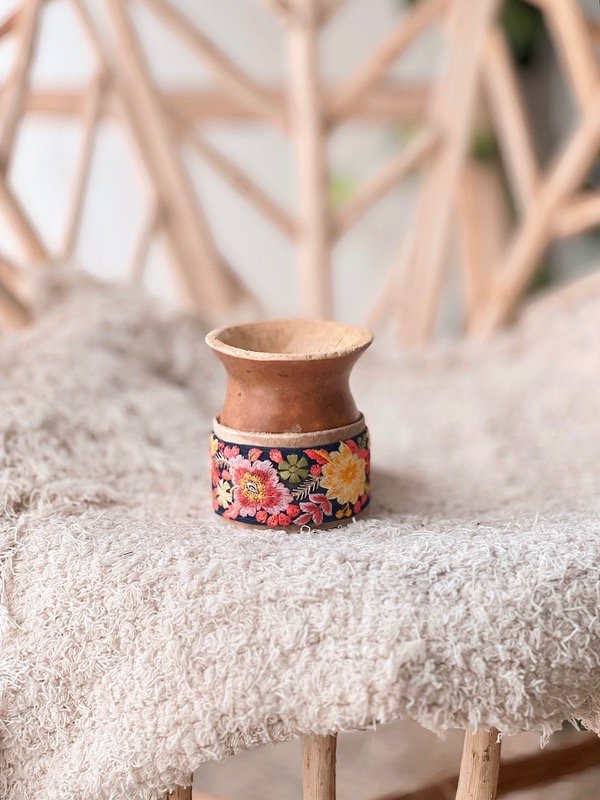Mate de calabaza. Base 100% cuero intervenido con bordado - diseños únicos -