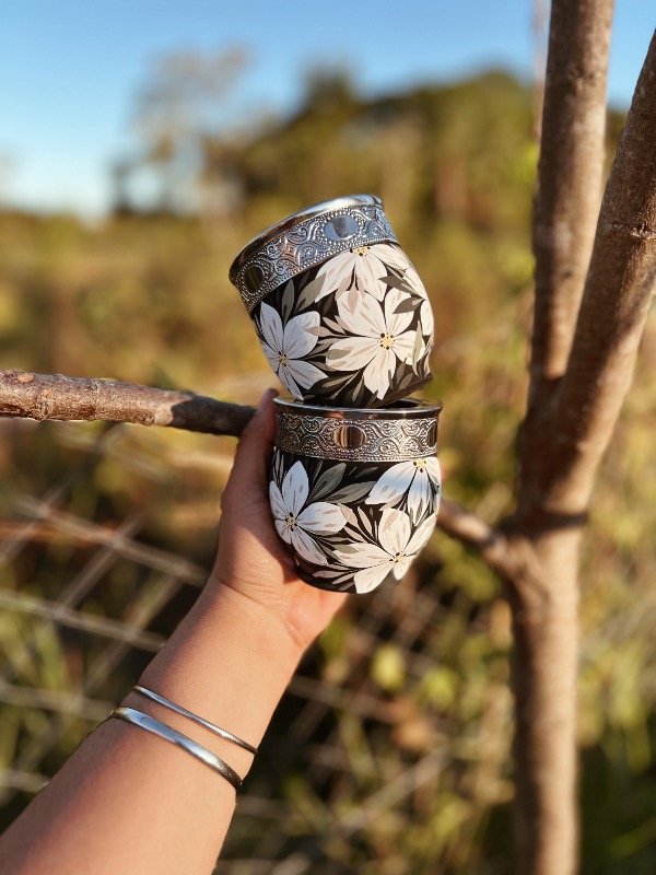 Mate de algarrobo con virola de acero, pintado a mano. ✨CON BOMBILLA 100% ACERO DE REGALO✨