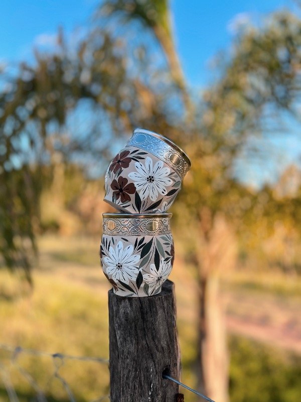 Mate de algarrobo con virola de acero, pintado a mano. ✨CON BOMBILLA 100% ACERO DE REGALO✨
