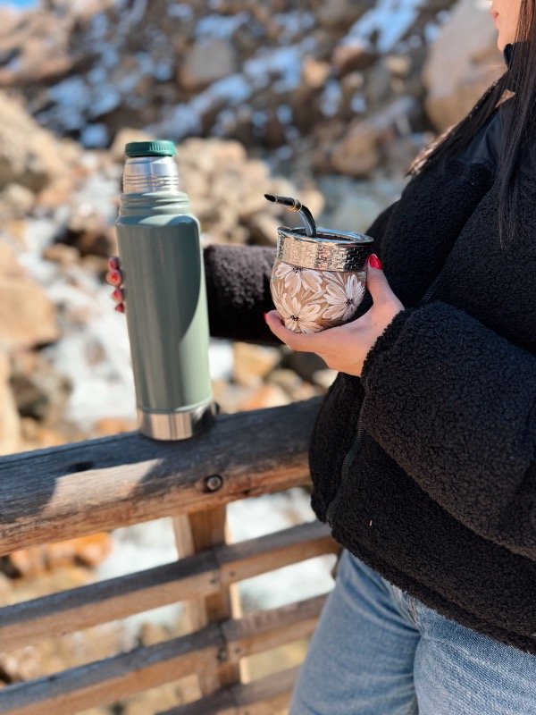 Mate de algarrobo con virola de acero, pintado a mano. ✨CON BOMBILLA 100% ACERO DE REGALO✨