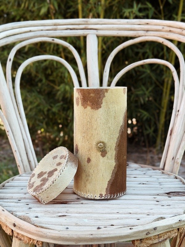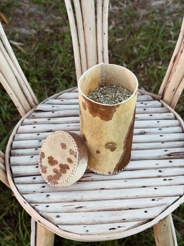 Nuestras nuevas yerberas son realizadas con un cuero crudo overo que las hace únicas, no hay una igual a otra, por lo que al momento de realizar la compra podes consultarme cuáles son las que están disponibles y te envío una foto para que elijas la que más te guste.